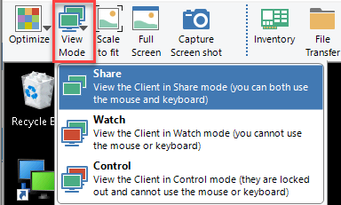 _ گزینه Share یعنی هم کلاینت و هم شما به ماوس و کیبورد دسترسی دارید.