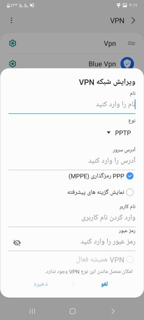 5-یک نام دلخواه برای شبکهVPNوارد کنید.