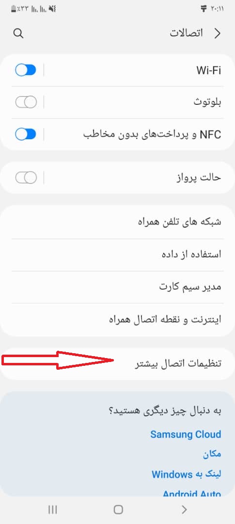 2-در قسمت اتصالات بر روی گزینه ی تنظیمات اتصال بیشتر کلیک کنید.