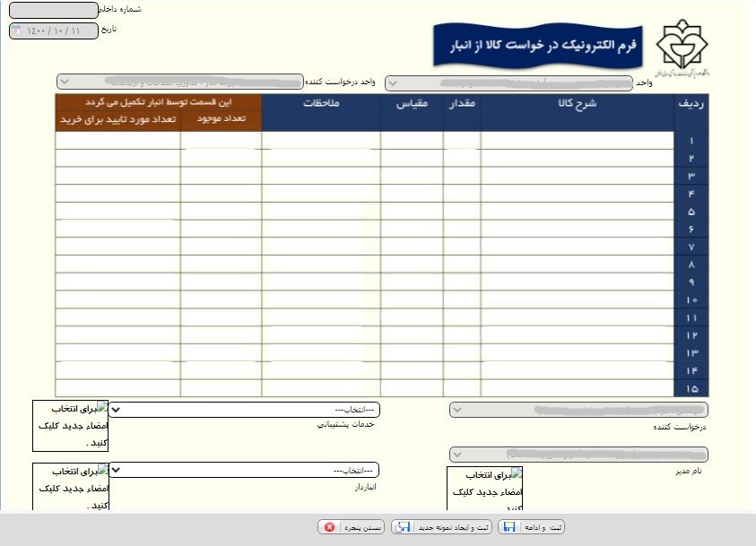 - اطلاعات درخواستی را در فرم مورد نظر وارد نمایید و درنهایت روی دکمه ثبت و ادامه کلیک نمایید.