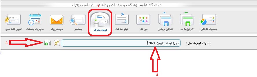 - مرحله بعد و پس از ورود در منوهای بالای سامانه روی بخش ایجاد مدارک کلیک نمایید.