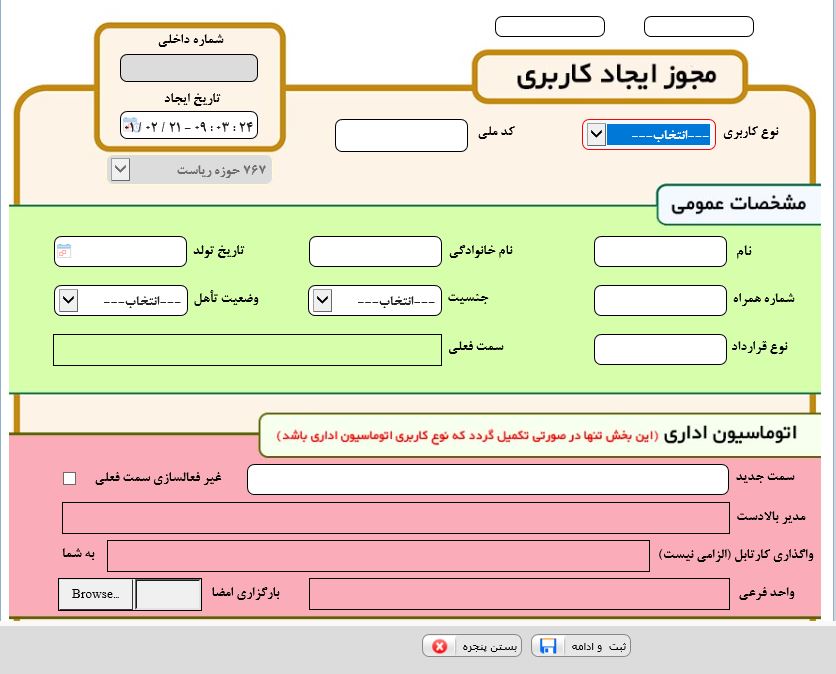 - اطلاعات درخواستی را در فرم مورد نظر وارد کنید و درنهایت روی دکمه ثبت و ادامه کلیک نمایید.