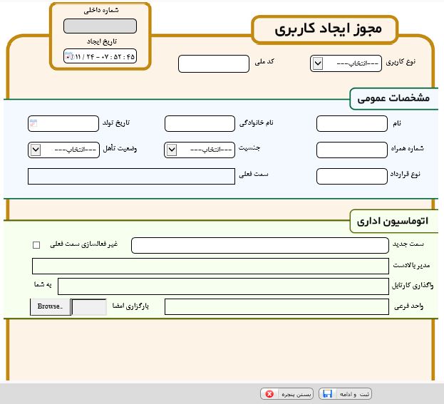 فرم ایجاد نام کاربری و سمت در اتوماسیون اداری